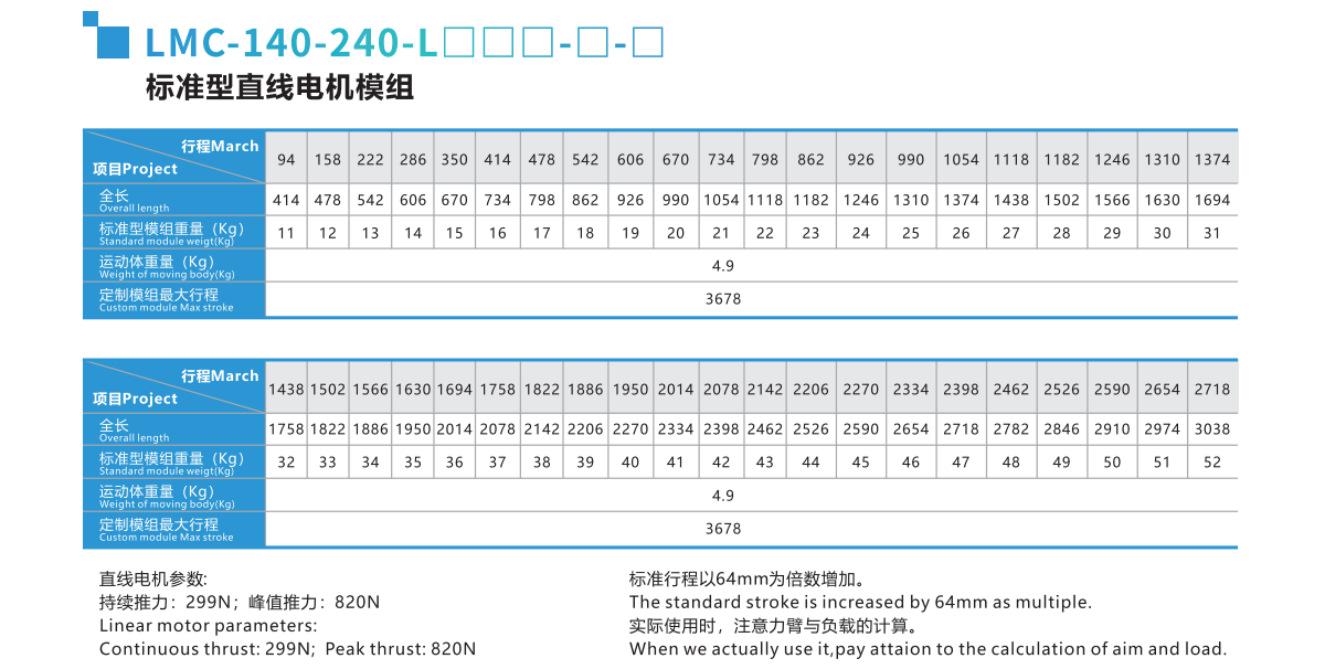 標(biāo)準(zhǔn)直線電機(jī)模組